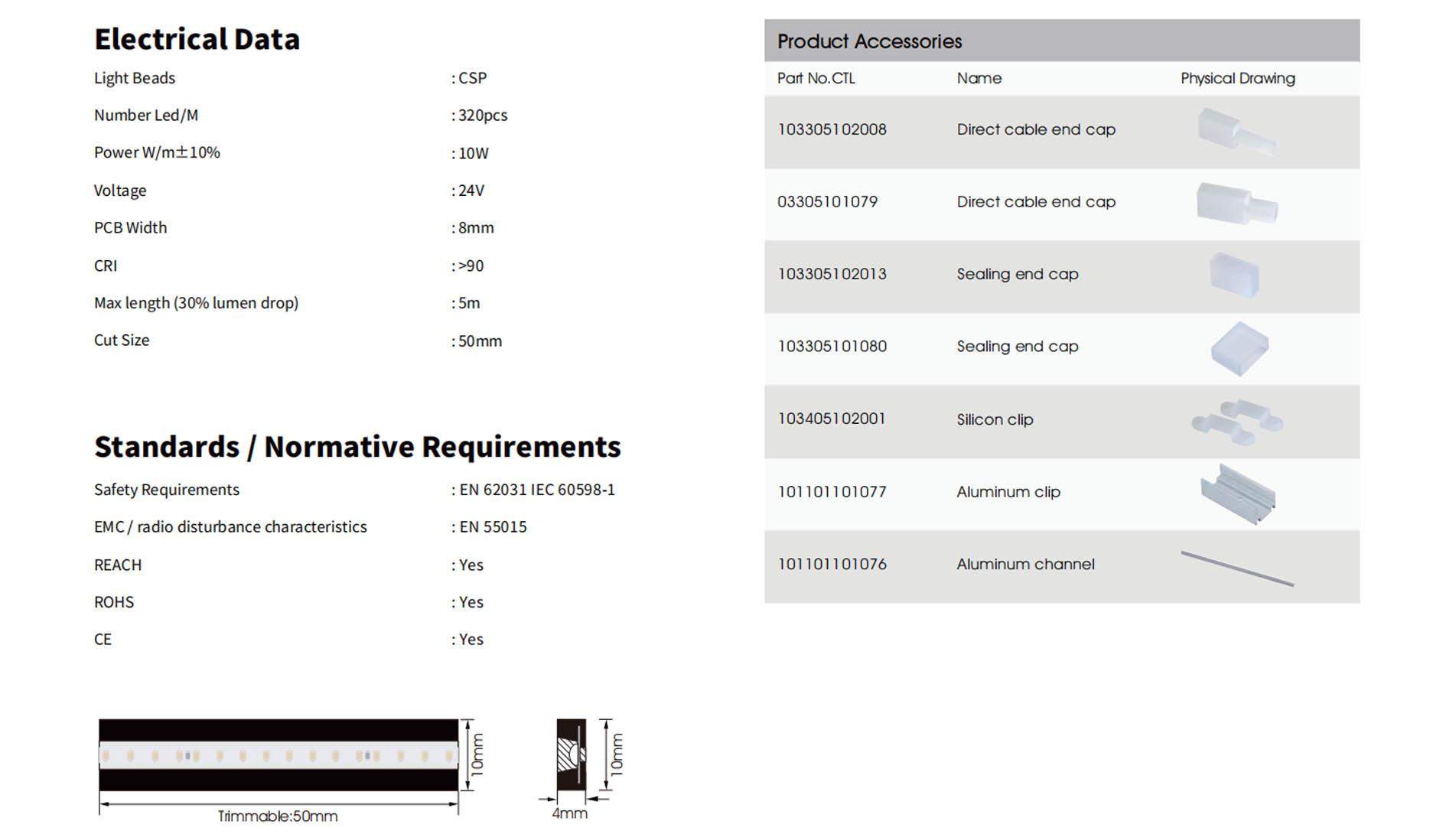 10W CRI90 320LED/m IP68-WHITE