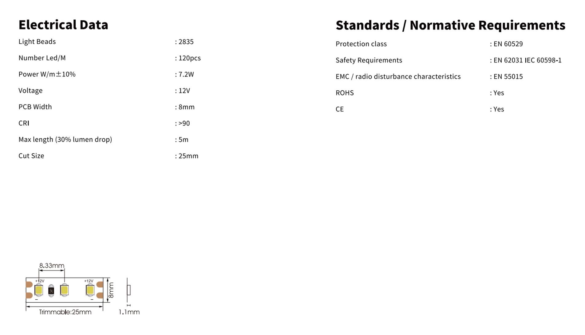12V 4.8W CRI90 60LED/m IP20 G