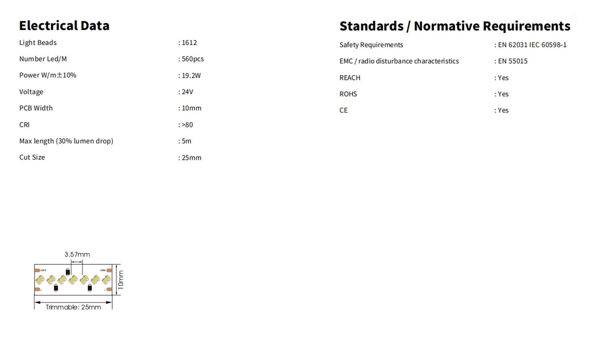 19.2W CRI80 364LED/m IP20 F