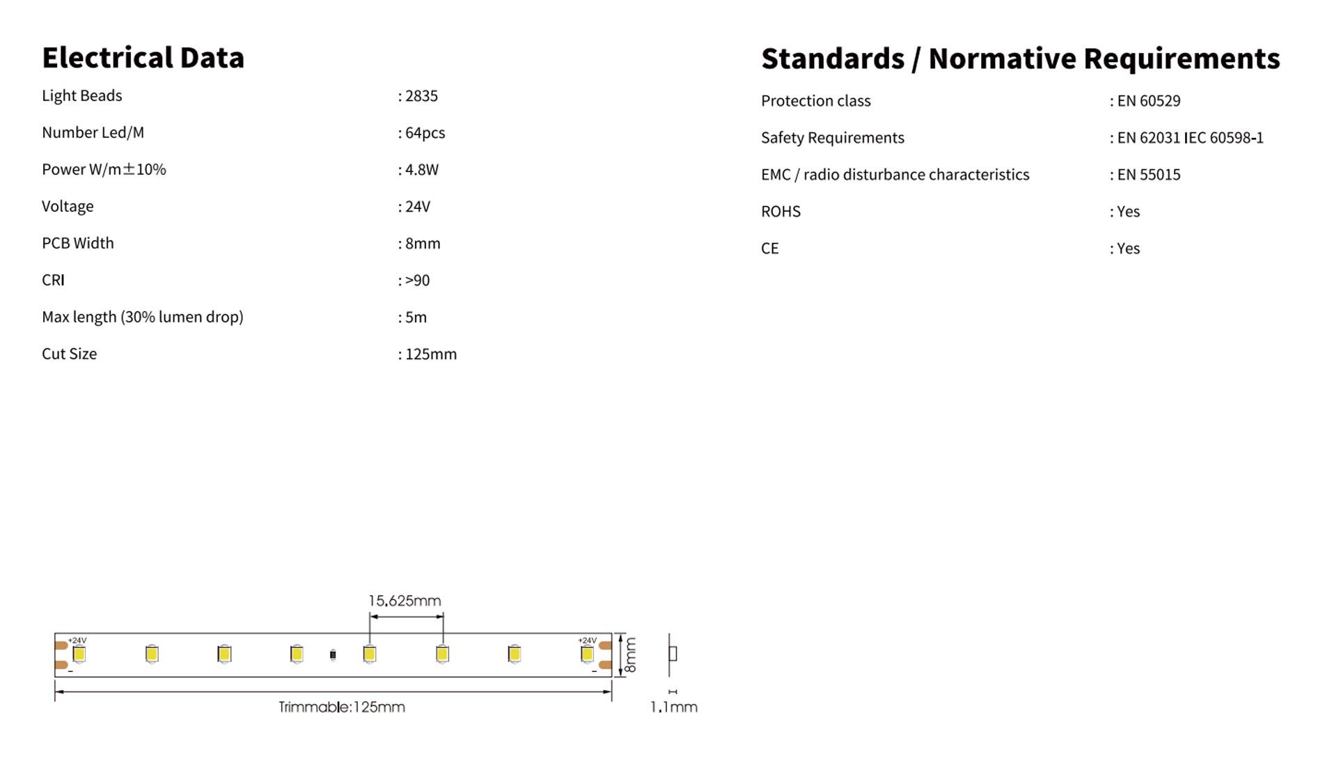 7.2W CRI90 80LED/m IP20 D