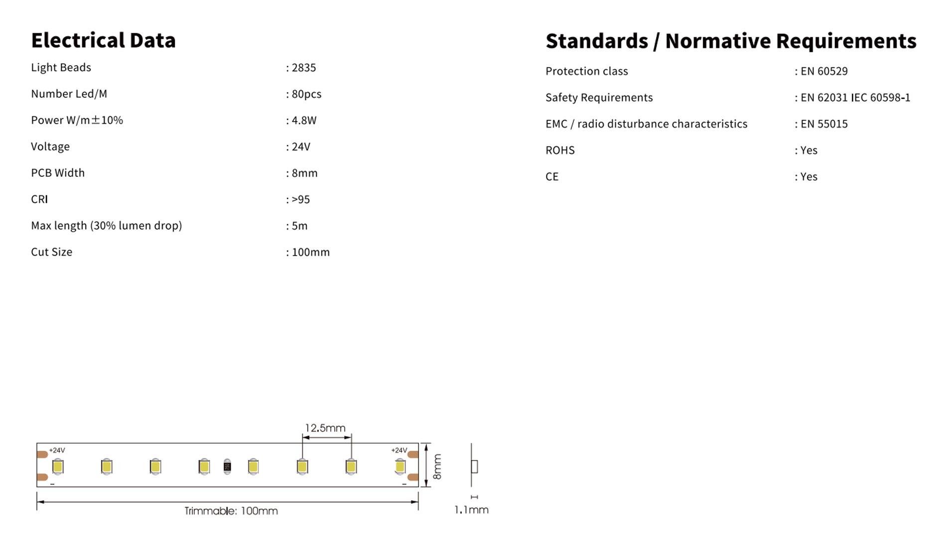 9.6W CRI95 R1-R15>90 160LED/m IP20 F