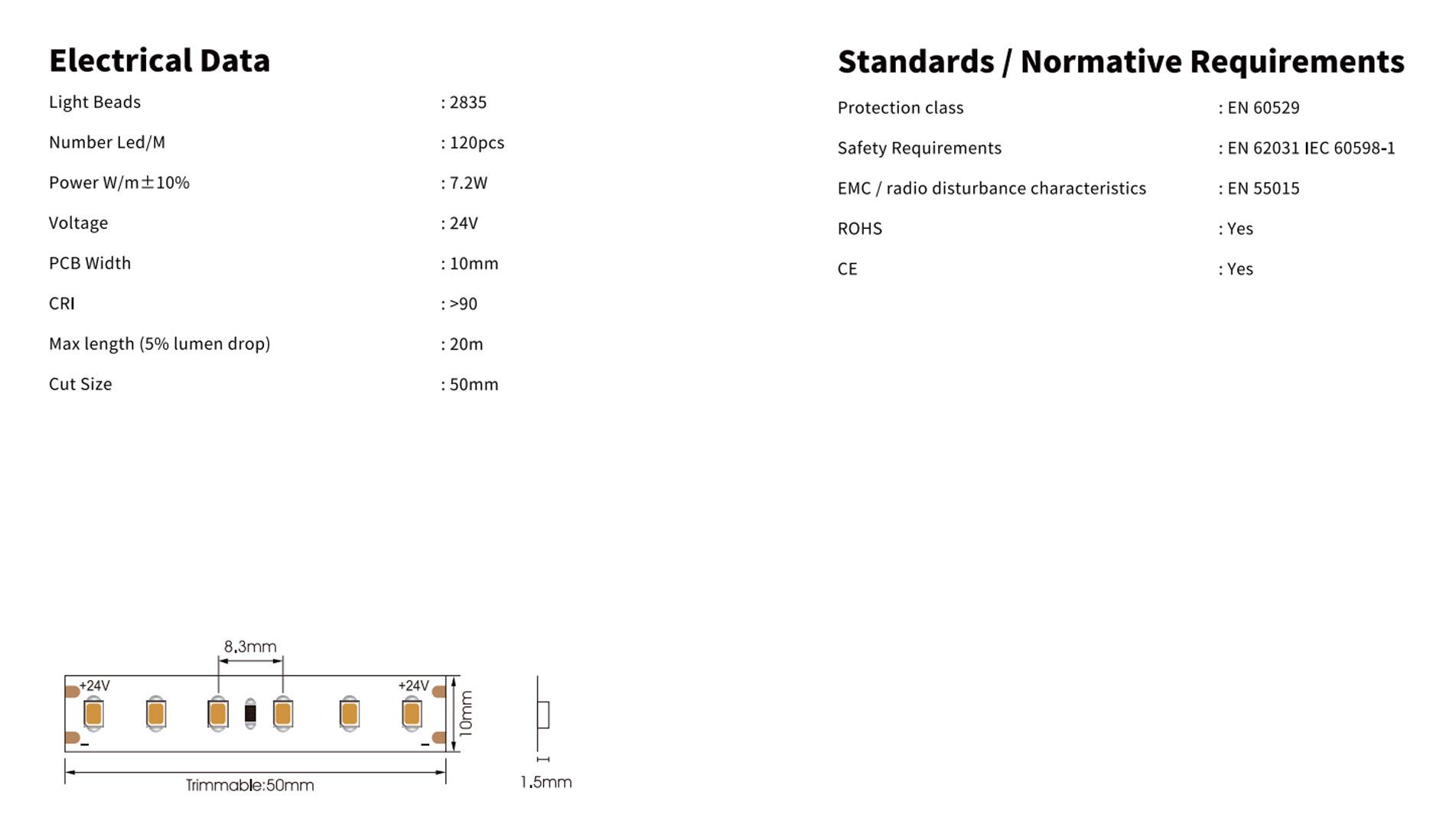 24V 4.8W CRI90 60LED/m IP20 G