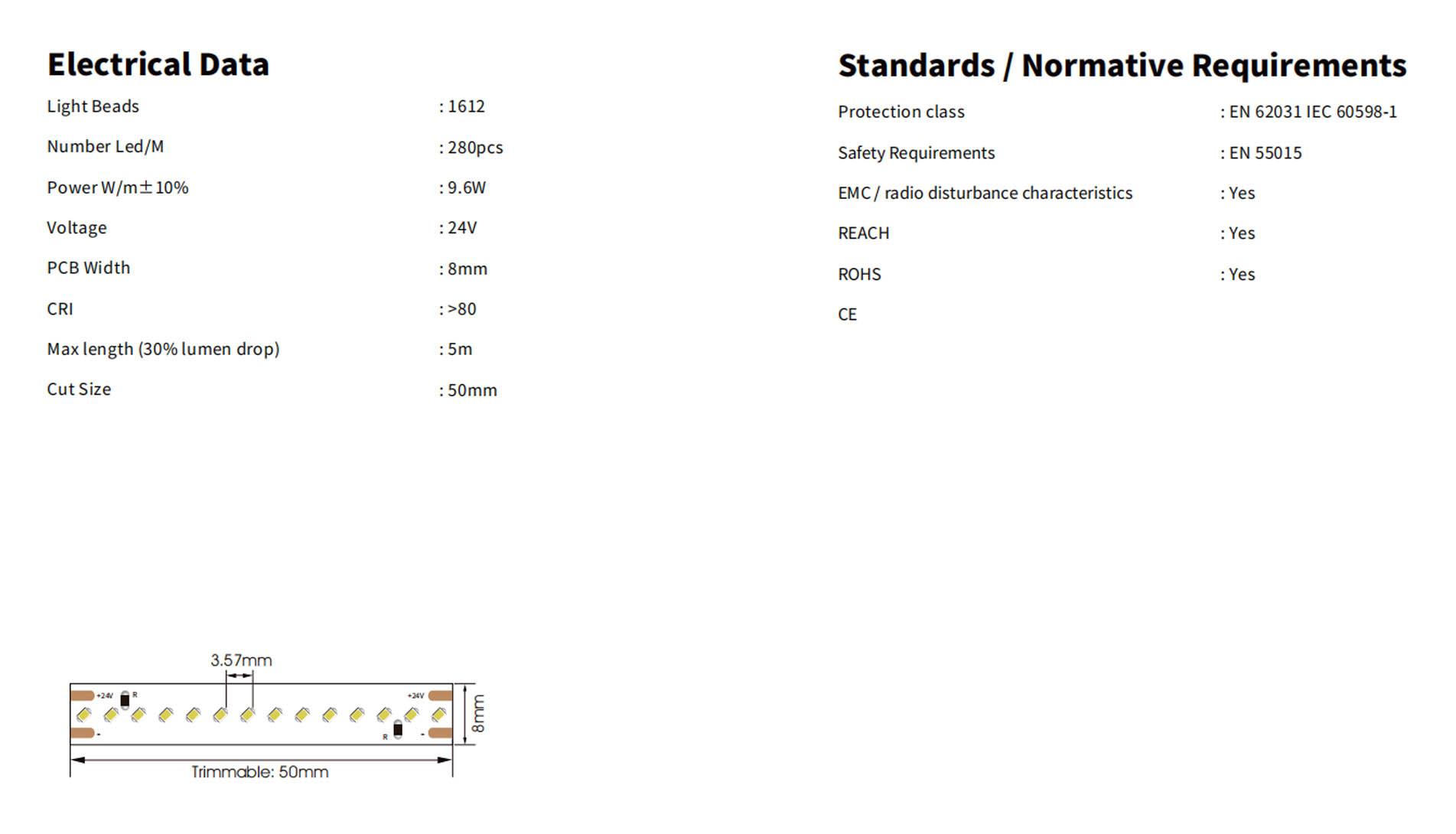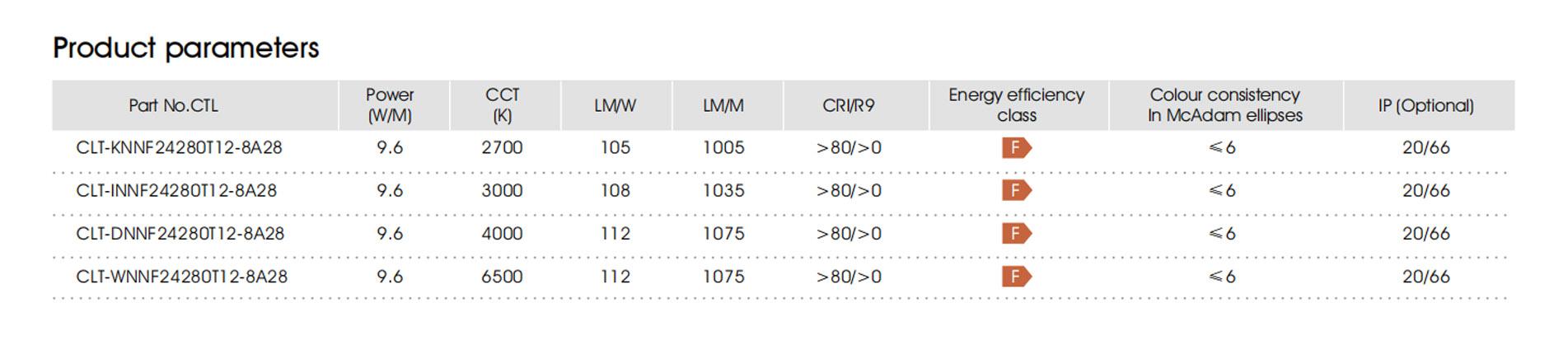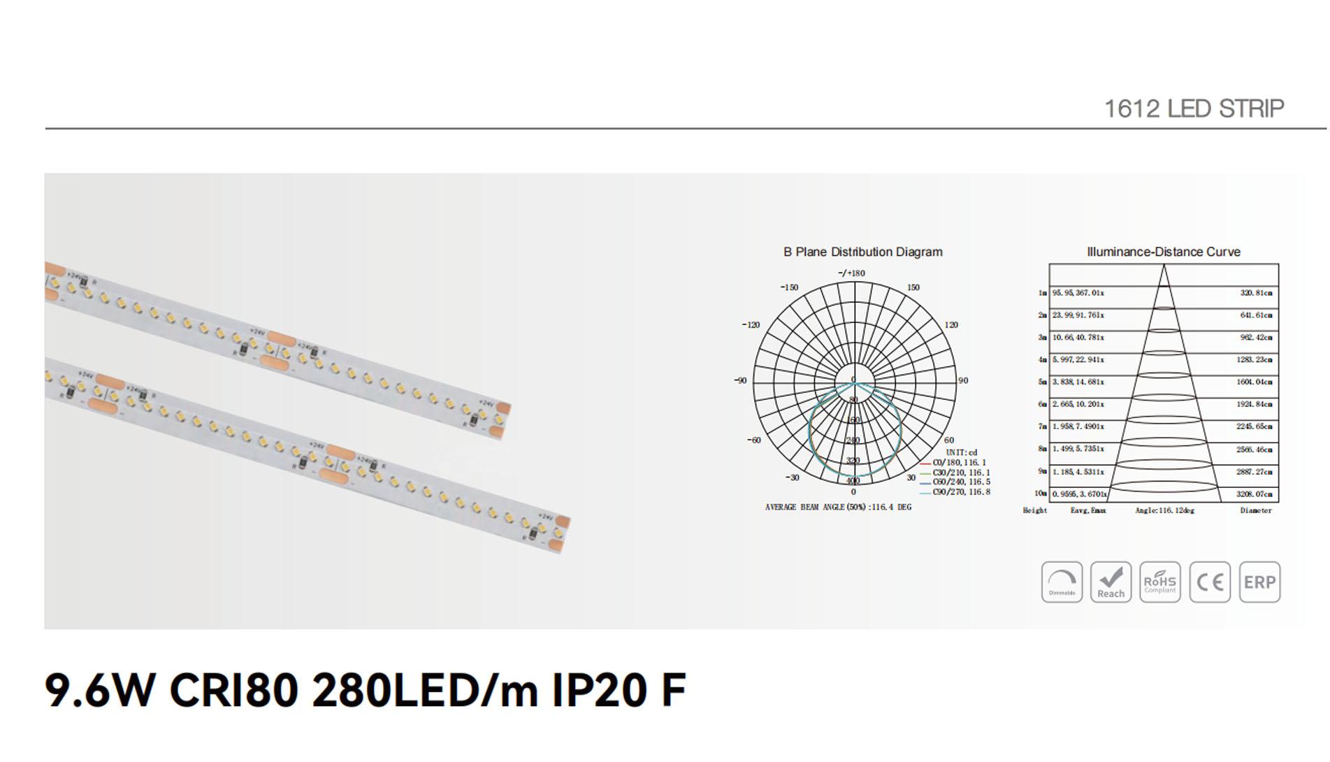 9.6W CRI80 280LED/m 4mm IP20 F