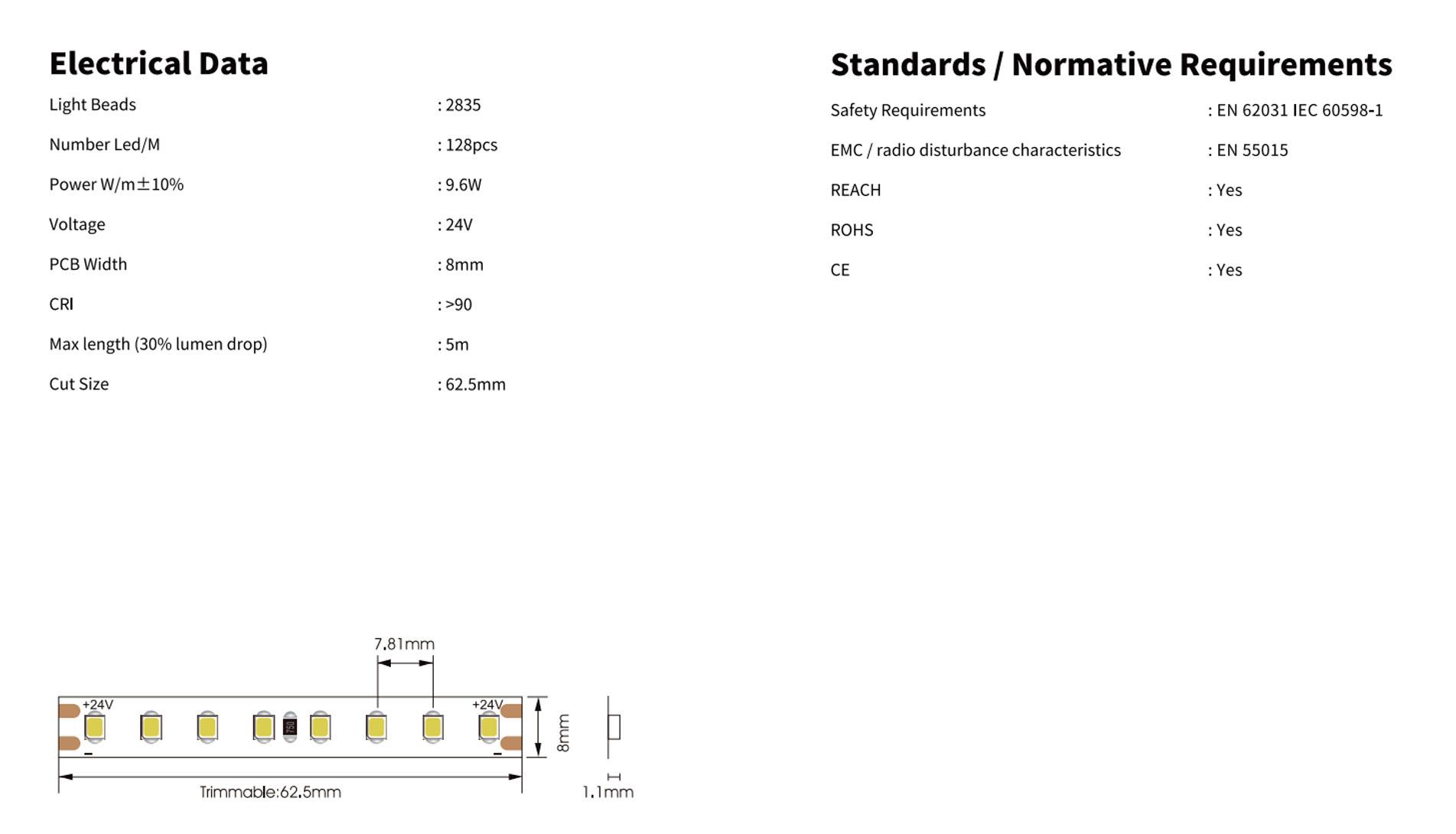 14.4W CRI90 128LED/m IP20 E/F